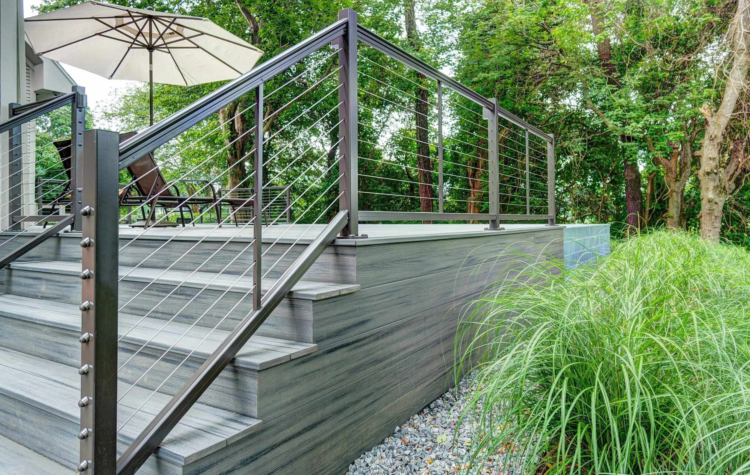 Waterfront Decks particularly benefit from the unobstructed views and superior corrosion resistance that cable systems provide in high-exposure locations.
